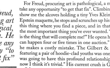 Society is always in progress. But which way does it go? What does that cost to an individual? This work was made for a work-in-progress show and this empty site holds promise as a work in progress. Who will this empty plot serve? As dense capital cities around the world are faced with increasing habitation, gentrification becomes the norm. Gentrification, capitalism, spreads its influence, gentrifying city centres making affordable housing impossible pushing those who can't afford these to the edges. Living in London at the time of this work, Gina juxtapose an image of an empty plot of land against an excerpt of an interview from a fervent art collector, brandishing his infatuations with famous artists and his extensive art collection. Gentrification capitalism is placed beside the capitalist commodification of artworks as a self-criticism of being in the arts.
